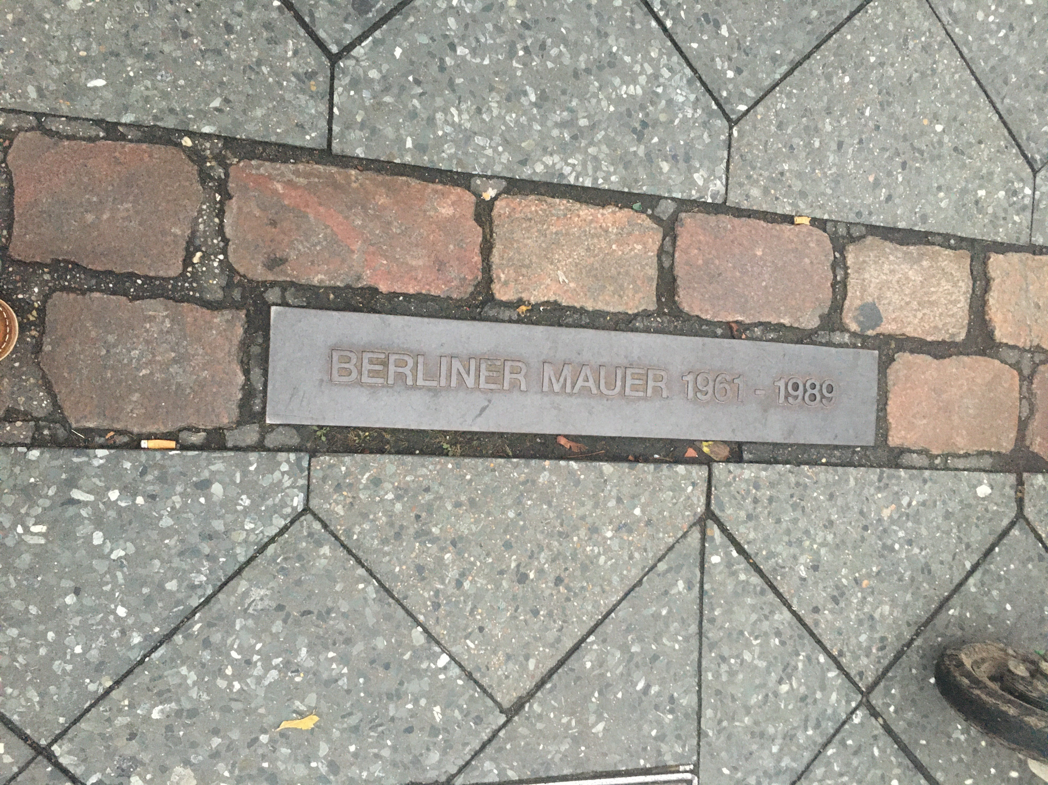 Voy caminando y paso sobre las señales de donde estuvo el muro, me hace detener y hasta a agrandar mi paso como buscando sortear el límite. Pienso como habrá sido estar de un lado y del otro. Y hoy hasta parece un juego saltarlo sin esfuerzo alguno.